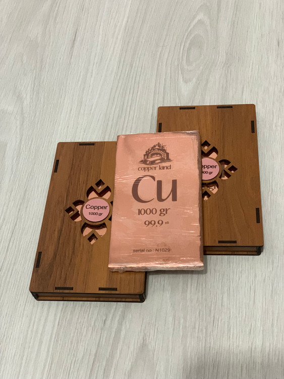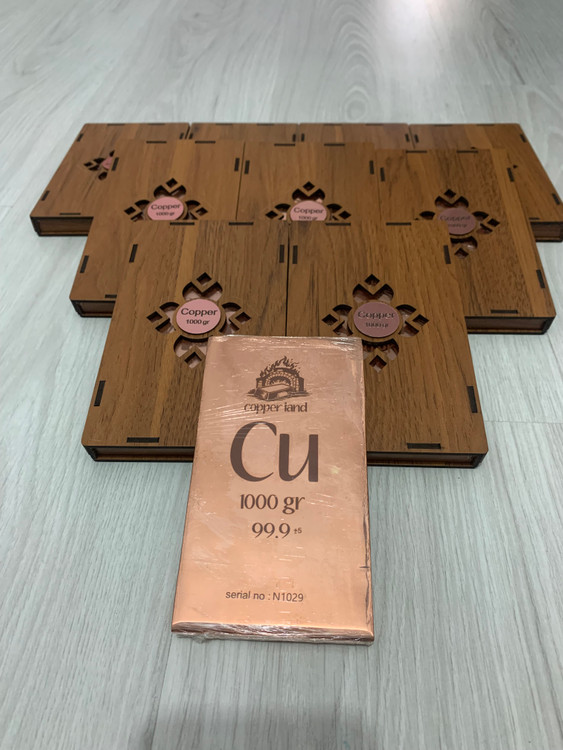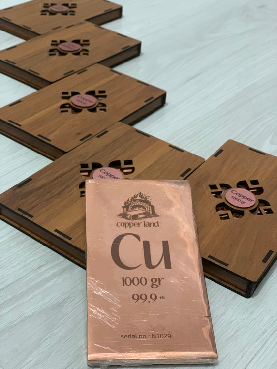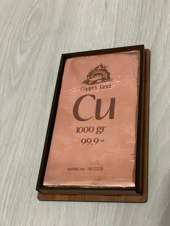 شمش مس یک کیلویی کوپرلند(جنس مس باهنر) پرداخت شده حکاکی سریال دارهمراه با باکس جهت سرمایه گذاری